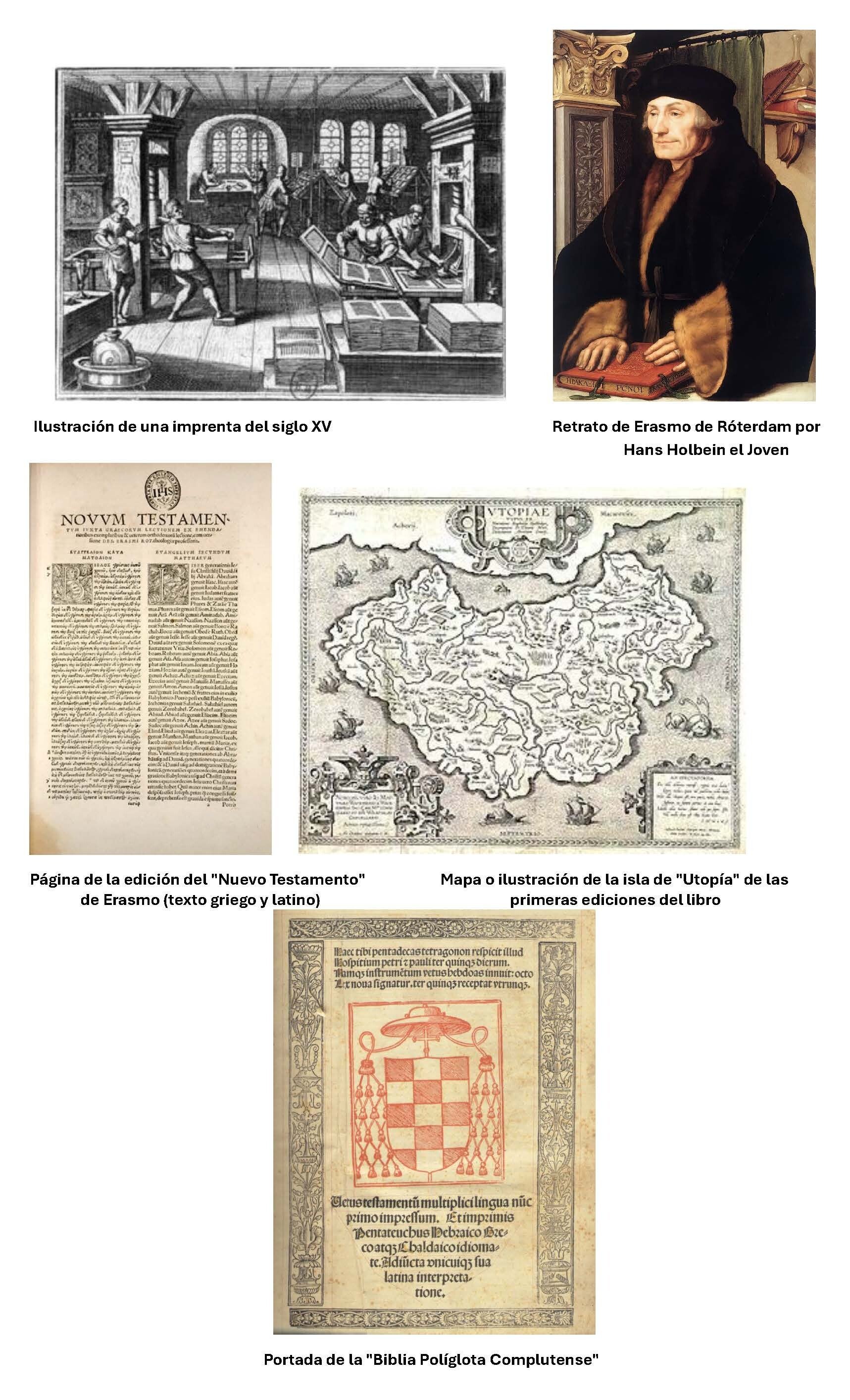 La imprenta de tipos móviles de Gutenberg (c. 1450) fue fundamental para la difusión masiva de las ideas humanistas. Abarató los libros, permitió una mayor uniformidad en los textos y expandió el acceso al conocimiento más allá de los círculos eclesiásticos y aristocráticos.